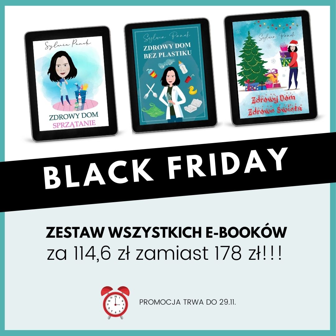 W zestawie najnowszy e-book „Zdrowy dom bez plastiku” oraz pakiet „Zdrowy dom – Sprzątanie” w skład którego wchodzą: